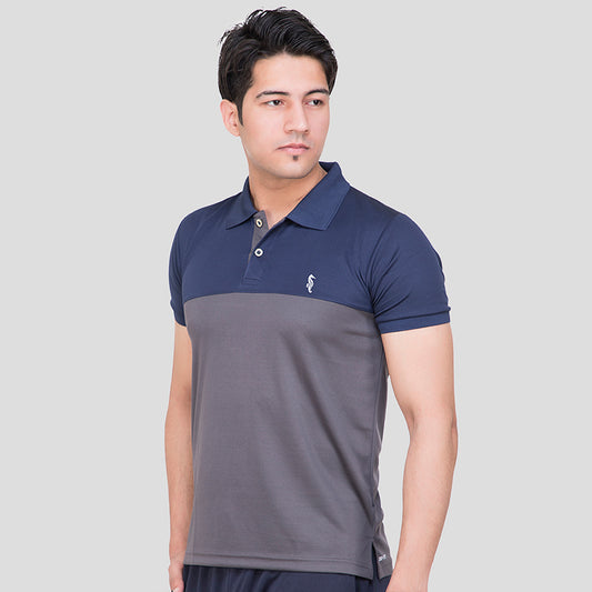 MENS T-SHIRT COLLAR COL NAVY-GREY H/S 0111