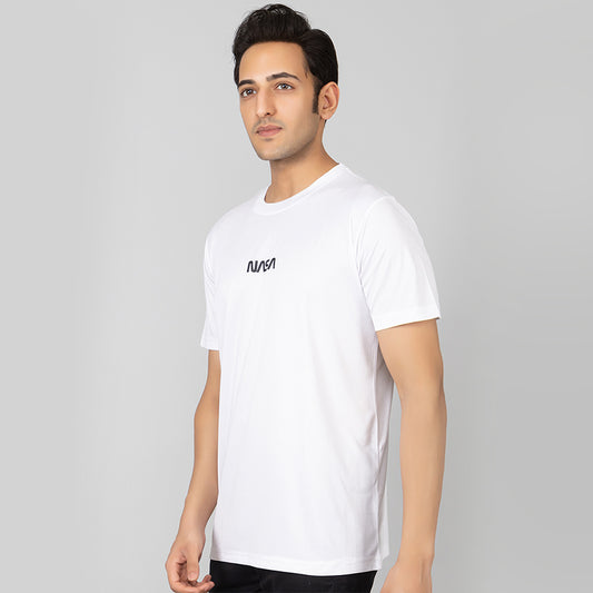 MEN IN BLUE DRY-FIT PRINTED WHITE NASA DESIGN